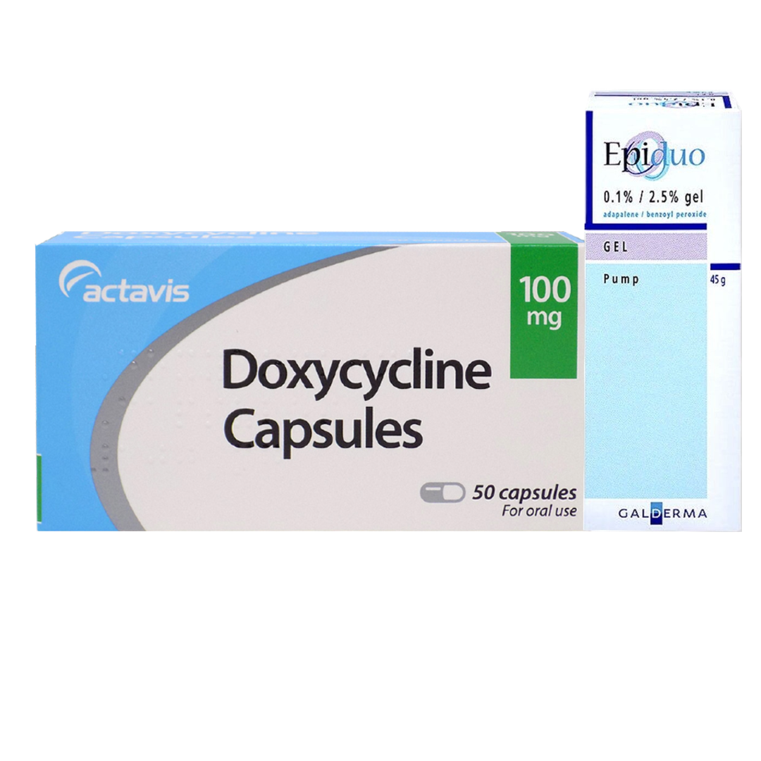 Doxycycline 100mg Capsules (84 Capsules) and Epiduo Gel (45g)