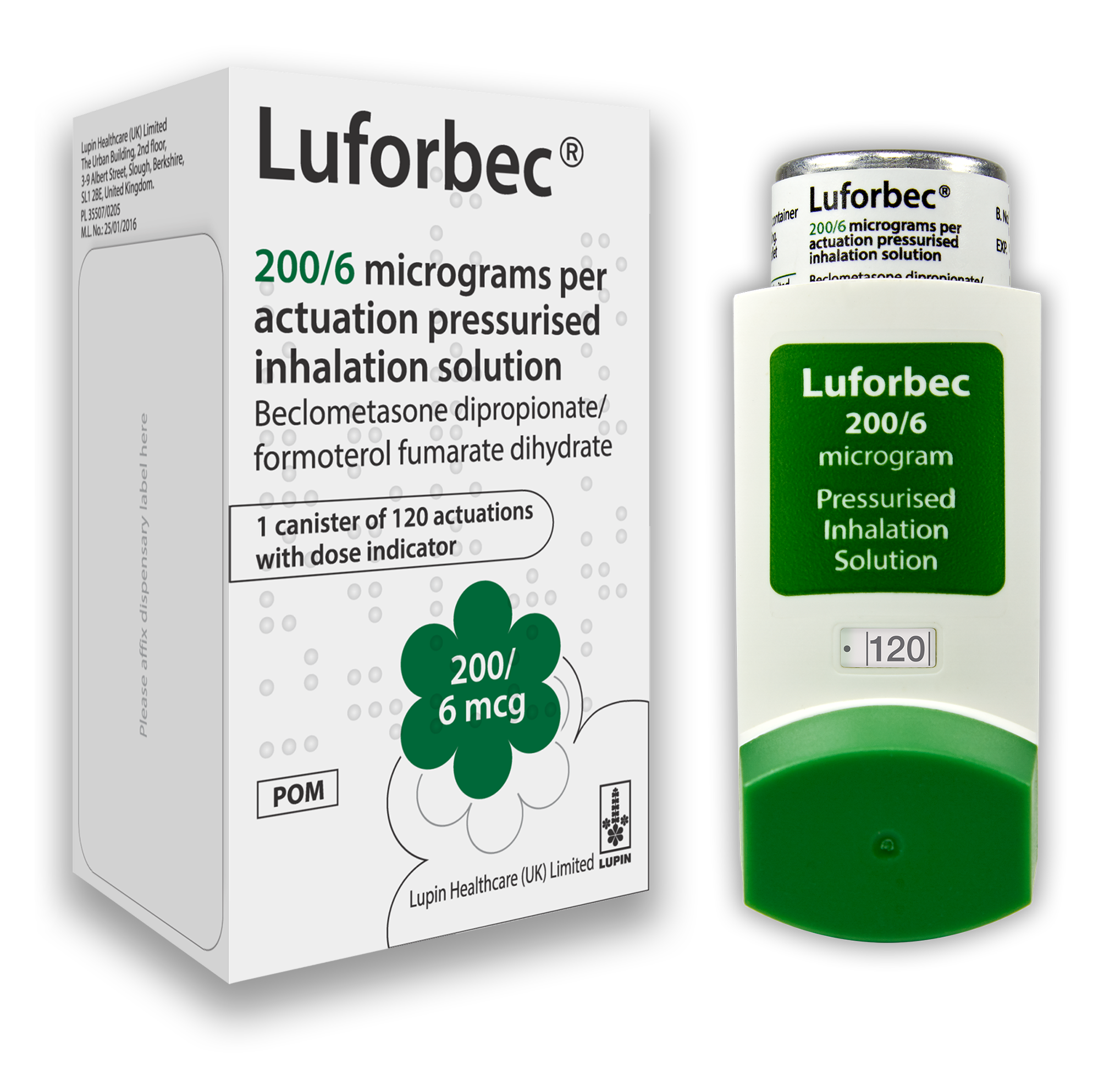 Luforbec is a pressurised inhalation solution containing two active substances (beclometasone dipropionate and formoterol fumarate dihydrate) which are inhaled through your mouth and delivered directly into your lungs.
