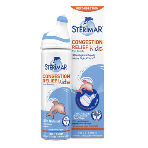 Sterimar Kids Congestion Relief is a hypertonic solution made from 100% natural sea water enriched with added copper and magnesium salts.