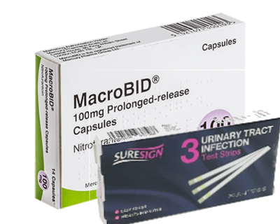 Nitrofurantoin 100mg MR (6 Capsules) & Suresign Urine Test Strips Bundle