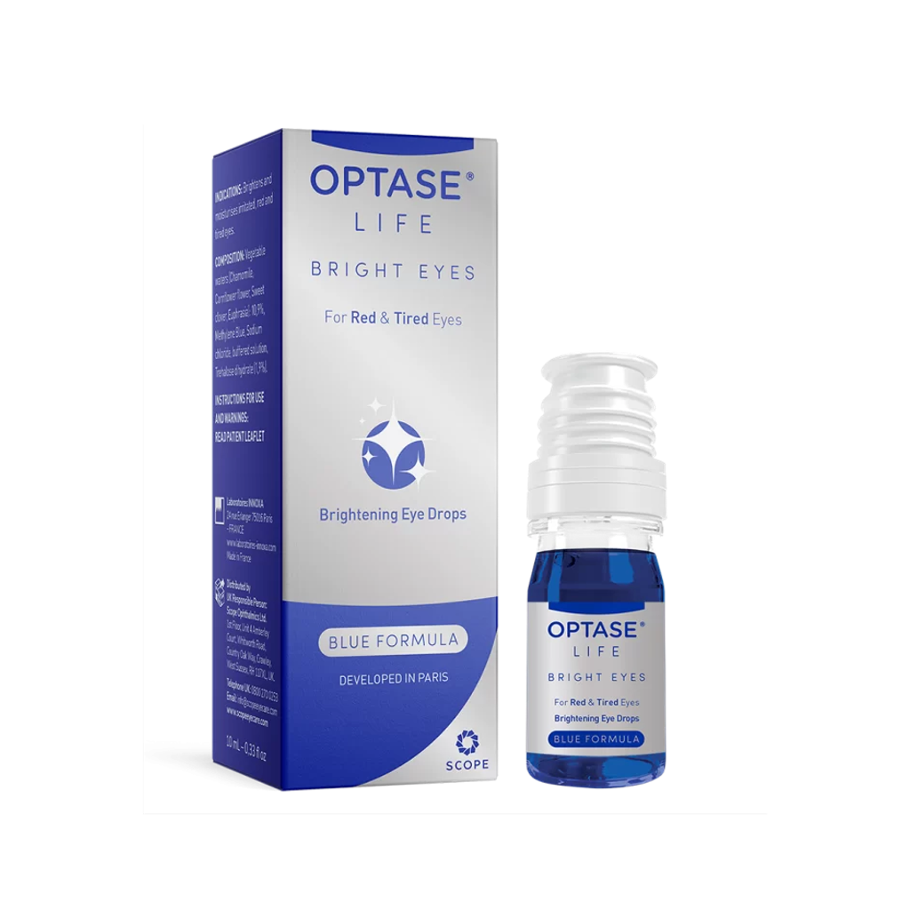 Optase Life bright eyes drops are a natural brightening solution for red, tired eyes caused by too much screen time, late nights, partying and more.