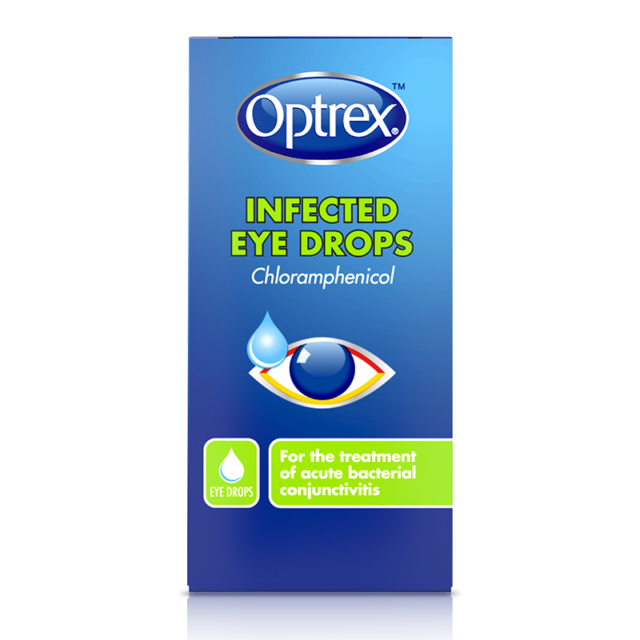 Optrex Infected Eye Drops contain an antibiotic called chloramphenicol. It is used to treat bacterial infections that affect the front surfaces of the eye. The most common type of infection in this area is called acute bacterial conjunctivitis.