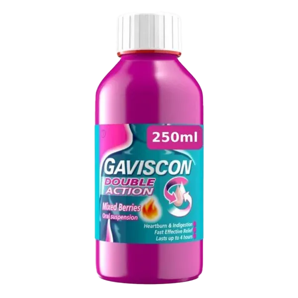 Gaviscon Double Action provides dual relief from heartburn and indigestion symptoms and is formulated to work in two ways. It not only creates a protective barrier over your stomach to stop refluxing acid causing discomfort, it also neutralises excess stomach acid.