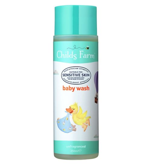 - Use of a gentle cleaner or body wash such as Childs Farm Baby Wash 250ml when bathing.
