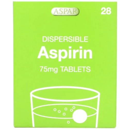 Aspirin 75mg Dispersible Tablets Patient Information Leaflet (Summary of Product Characteristics) can be found via this link or inside the product box. The Aspirin 75mg Dispersible Tablets Patient Information Leaflet will contain common questions about Dispersible Aspirin it does not however contain all of the available information. It should not be used for advice in place of your doctor’s instructions. For further information that isn’t contained in the Aspirin 75mg Dispersible Tablets Patient Information Leaflet, contact your doctor or pharmacist.Aspirin 75mg Dispersible Tablets Pil