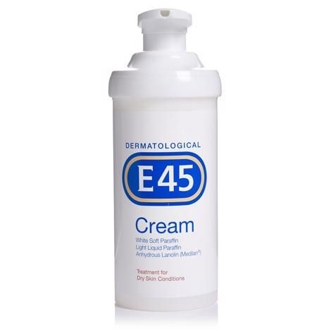 E45 Cream for dry skin has been clinically proven to treat and soothe dry, itching, flaking, chapped, rough and calloused skin, sunburn and detergent hands. The non-greasy E45 Cream for dry skin formula leaves skin soft and relieved. E45 Cream for dry skin is also for more serious dry skin conditions such as eczema, dermatitis, ichthyosis and certain dry cases of psoriasis.E45 Cream Very Dry Skin