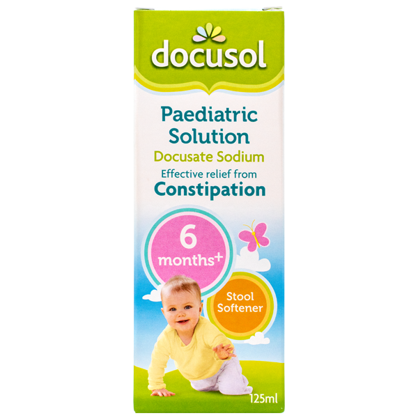 Docusol Solution is one of a group of medicines called laxatives. They are usually used to prevent and treat constipation. Docusol Solution is usually used to treat and prevent constipation. Docusol Solution may also be used before a stomach X-ray. Docusate is used to soften the poo and make bowel movements easier. Constipation can often worry parents. Stool that is not easily passed or is not soft, means your child is more than likely constipated. In rare cases, constipation can be caused by a lack of nerves going to the intestines or by a problem with the way the intestine has formed during birth. A health care provider can test for these if they feel it is needed.Docusol Paediatric Solution