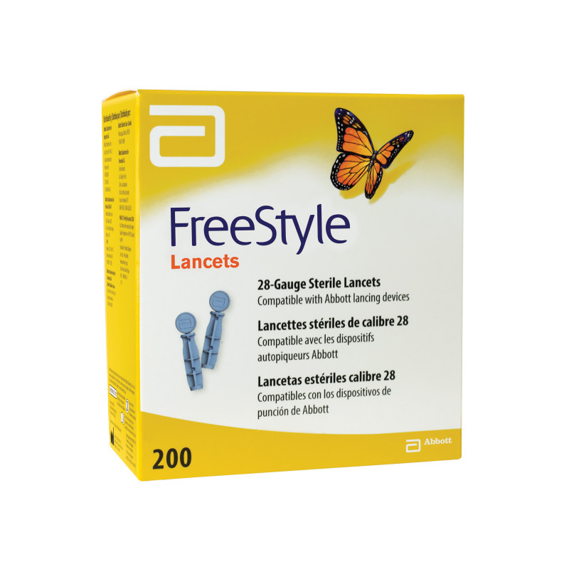 Freestyle Lancets are ultra-fine lancets designed to provide a smooth and virtually painless testing experience. They have a thickness of 0.05mm and a gauge size of 28g, making them ideal for regular glucose testing. Each pack contains 200 lancets, compatible with various lancing devices. Compatible with Abbot lancing devices. -