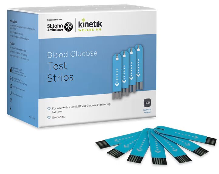 Depending on how many you purchase, Kinetik Blood Glucose Test Strips can last for months. Hygienic, sterile and easy to use, they also fit perfectly with the Kinetic Lancing Device. Kinetik is a British medical device company. Producing Kinetik Blood Glucose Test Strips and other diabetes related medical products to the highest standard. All of the Kinetik products meet the important requirements and accreditations associated with diabetes testing. Kinetik Blood Glucose Test Strips are made in association with St John Ambulance. Kinetik and St John ambulance share the same passion for empowering people to look after their health, from knowing how to tackle first aid emergency to safely, easily and accurately measuring blood glucose levels.Kinetik Wellbeing Blood Glucose Test Strips